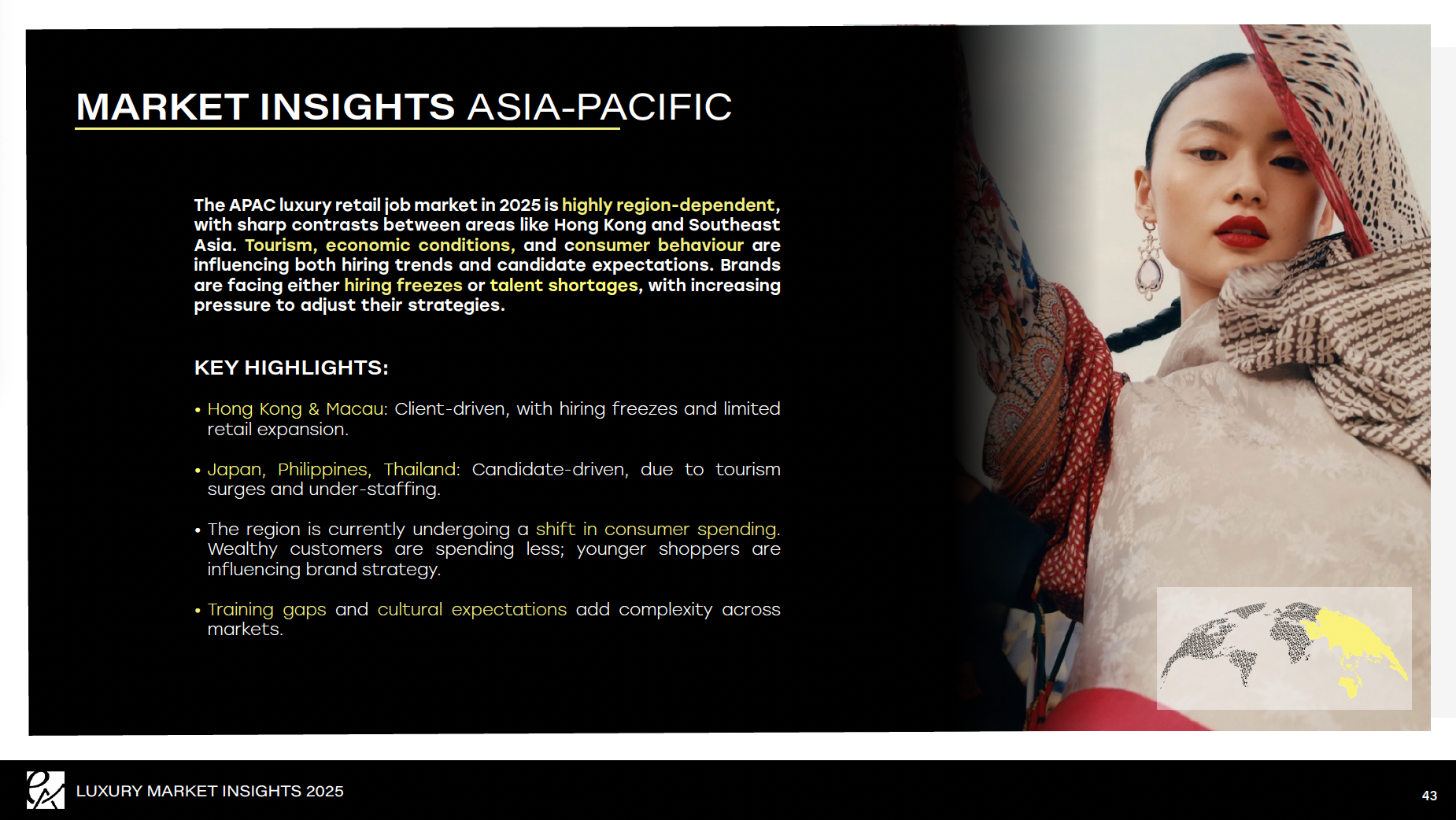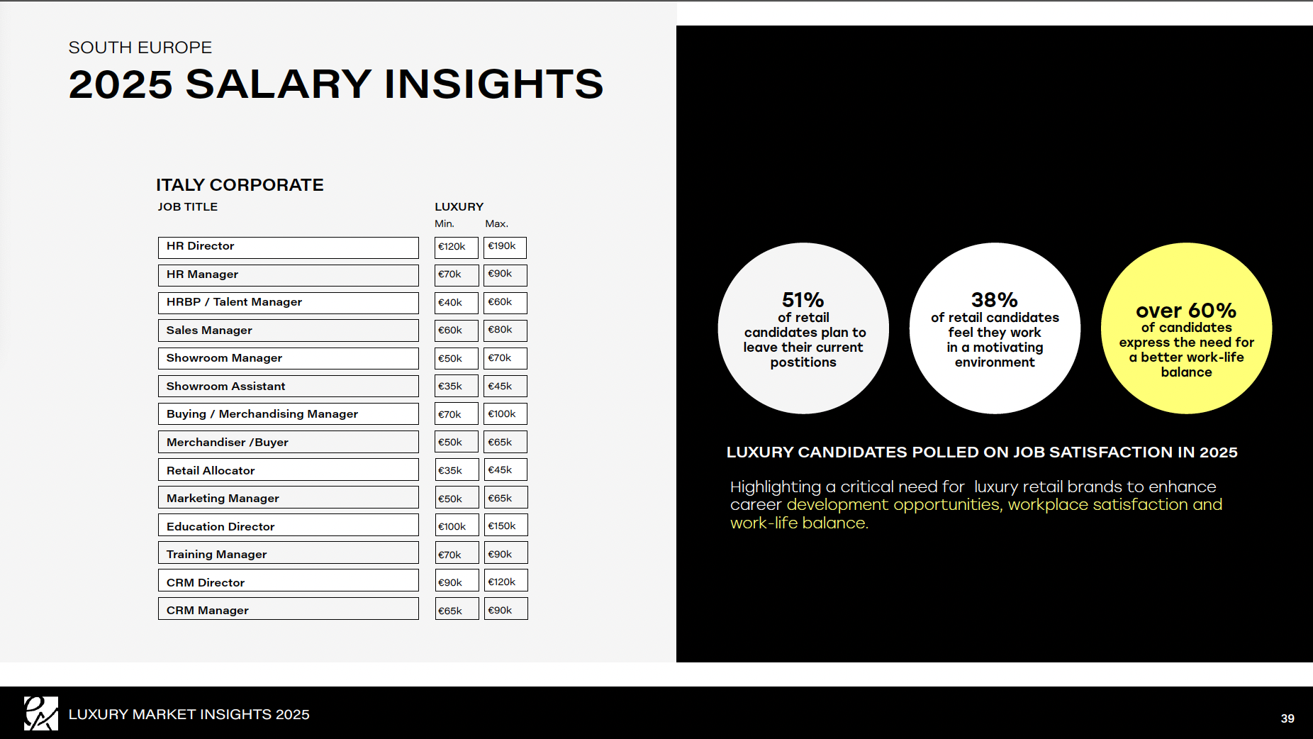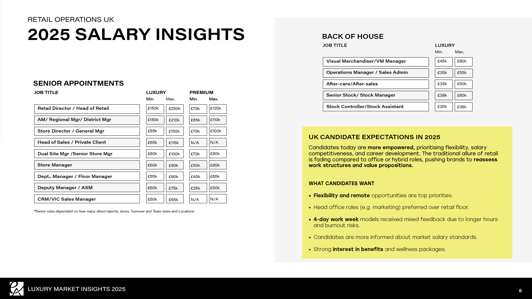 Covering the US, Middle East, APAC, North and South Europe and the UK, this document contains both salary ranges and data that I collected from my own public surveys and deep research in collaboration with retail consultants, and 'Luxury Market Insights 2025' was created.