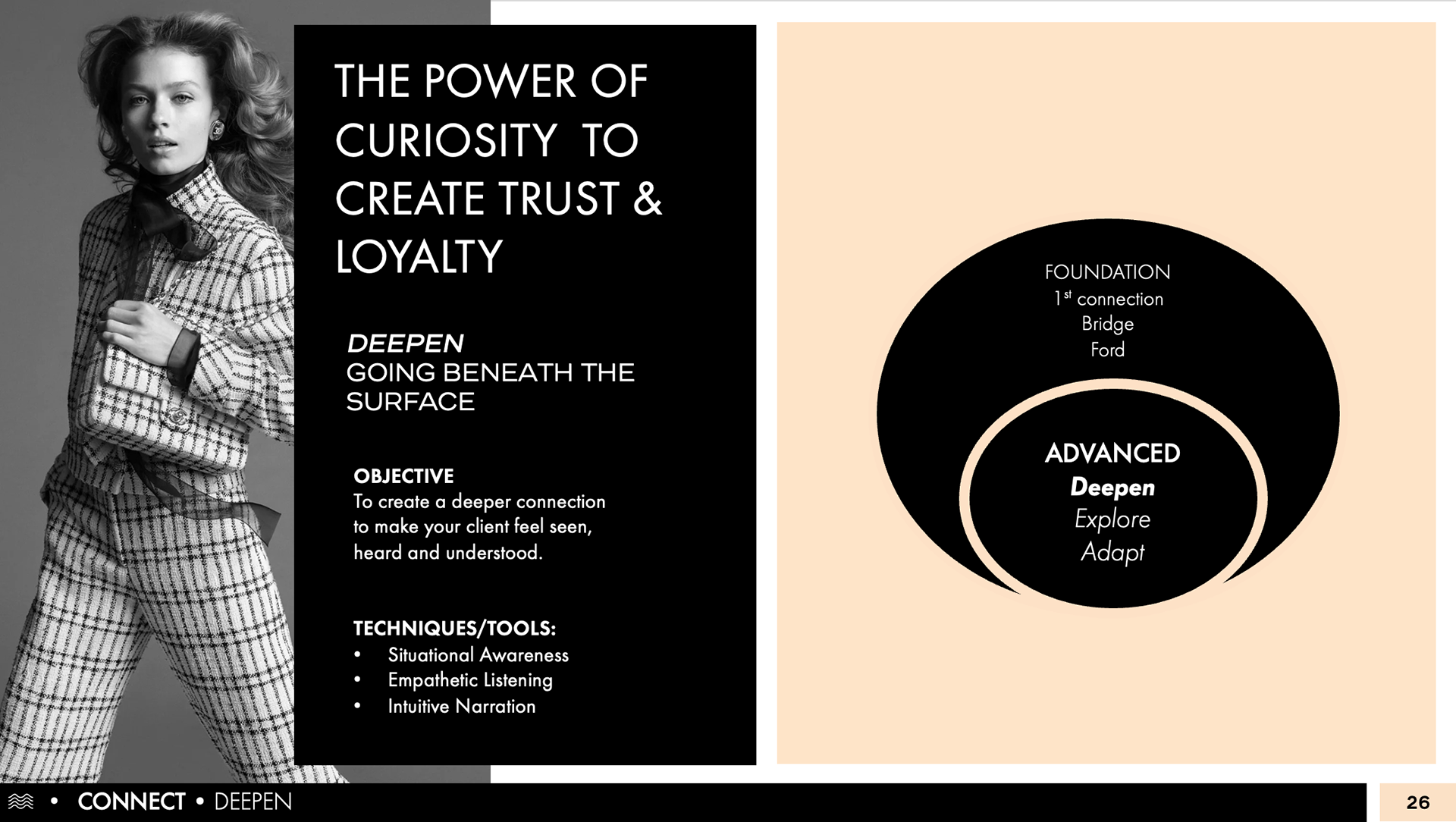 Working closely with the client, this 2-part deck includes over 300 pages of deep training material used for a global rollout by one of the world’s most iconic luxury houses.